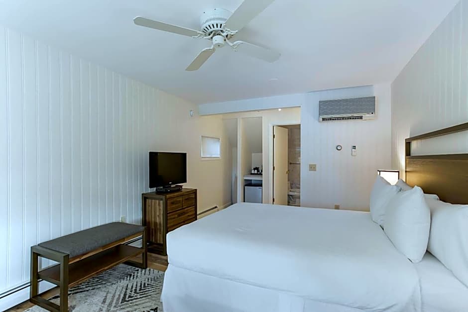 This suite provides a fireplace. The suite's kitchenette, which has a refrigerator and a microwave, is available for cooking and storing food. This suite features a tea and coffee maker, a seating area, a TV with cable channels and mountain views. The unit offers 1 bed.